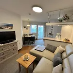 Residenz Am Yachthafen, Whg 12 Apartment provides a balcony and a seating area furnished with a sofa, along with modern amenities like a TV and Wi-Fi. For added convenience, a shower are available at this accommodation.